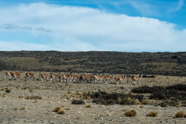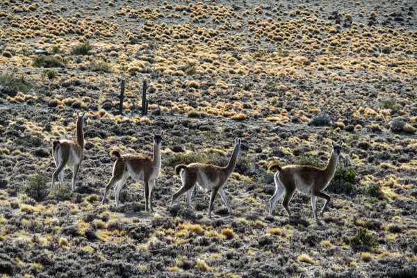 Chile Chico – Los Antiguos. Der Grenzübertritt verläuft reibungslos: imigración Chile, aduana Chile (Schwätzchen mit dem Zöllner: «Aus der Schweiz kommt ihr, das muss schön sein. Das einzige aus der Schweiz, das ich kenne, ist Victorinox»; Anmerkung: In Japan hat uns ein (uns rettender) Tankwart mit «Alberto Tomba!» empfangen, als er erfuhr, aus welchem Land wir kommen.), zwei Kilometer fahren im «Niemandsland», imigración Argentinien, aduana Argentinen. Büssli ausgeführt, Büssli wieder eingeführt. Wir haben erfahren, gelesen, etc., dass solche Grenzübertritte bis zu drei Stunden dauern können. Kein Fleisch, keine Früchte, kein Gemüse, keine Milchprodukte. – Wir sind in Argentinien. Wie merkt man, dass man in Argentinien ist? – Die Währung, genau. Wir müssen nicht mehr mit Hunderten rechnen, dafür mit Zehnern. Sie tragen die typischen Mützen, die Männer, und zwar viele. Sprachlich können wir feine Unterschiede ausmachen (sch…, sch…, sch…). Landschaftlich beginnt kurz nach Los Antiguos ein neues Kapitel in unserem Bilderbuch: Östlich der Anden topfebene, weite, fast unendliche Pampa! Wir fahren südlich, den Anden entlang, vor uns Ebene, kleine Hügelzüge, Steppe, …Pampa! Zaunmacher haben auch in Argentinien ihr Auskommen, allerdings sind diese eher dazu da, die Tiere von der Strasse (Ruta 40) fernzuhalten. Tiere? Vereinzelt sind ab und an grüne Flecken auszumachen; Farmhäuser von Bäumen umgeben, irgendwo muss es eine Wasserquelle, einen Fluss geben. Da gibt es Viehzucht, ev. auch Pferde. – Wilde Tiere sind es, welche uns während eines ganzen Fahrtages durch die Pampa begleiten. Einige wenige Straussfamilien… & unzählige Gruppen von Guanacas. Sie gehören zu den Lama-Arten und sehen diesen sehr ähnlich. Einen Fahrtag also durch die Pampa mit Philipp Fankhausers HOME im akustischen Hintergrund (im Vordergrund immer noch das Brummen des Büsslis). «Die Pampa ist so sehr Cowboyland, dass es nicht mal mehr Pferde gibt.» Letzteres bezieht sich auf einen Umweg (Schotterpiste 2. Grades) von 250 km, den wir wegen verschütteter Strasse fahren mussten.– Und was war da mit dem Wind und den Kapriolen? – Die erste Nacht verbringen wir auf einer argentinischen Farm. Klein sei sie, so die Rede der Bäuerin. 300 – 400 Kühe, Rinder & Kälber. Es sei ein anstrengender Tag gewesen, denn am nächsten Tag werden viele Tiere verkauft; auf dem Markt und auch der Metzgerei; ein trauriger & freudiger Tag zugleich. Viele Arbeiter sind für diese Vorbereitungen auf den Hof gekommen; am Abend gibt es… asado! _ Zu gerne hätte ich sie auf die politische, v.a. auf die wirtschaftliche Situation Argentiniens & die eventuellen Konsequenzen für ihr Auskommen angesprochen. Ich verkneife es mir, zu unerfahren bin ich am ersten Tag in Argentinien! – Der Wind sei unerträglich, so die Bäuerin weiter. Im Sommer hätte sie ihn so satt. Aber das sei Patagonien. – Welche Kapriolen der Wind auch noch schlagen kann, wir werden es im argentinischen und chilenischen Patagonien noch zu Genüge erleben. – So zum Beispiel gibt es für die Wettervorhersage ein eigenes Piktogramm für WIND (Sonne, Wolken etc. werden gar nicht angezeigt). EXKURS Strassenschilder: «Zona en deformación permanente»; wenn das an der Strasse steht, wird es sich auch auf die Strasse beziehen, ne?! ODER: «Zona de Baches»; nomen est omen; kaum steht das Schild an der Strasse, tummeln sich grosse Risse und Löcher im Belag. Oft denken wir, statt Schilder aufzustellen, wären die Belagsreparaturen einfacher gewesen. ODER: Nach drei Kilometer gerader Strecke wird eine Kurve mit mindestens drei Schildern angezeigt, meist verbunden mit einer Temporeduktion. – Zurück zum Wind. Er ist für die Witterung zuständig. Wenn die Ebene so weit, der Blick unendlich wird, nimmt man den Himmel, die Wolken ganz anders wahr. Wie ein Mobile hängen die Wolken auf verschiedenen Ebenen am Himmel. Die Geschwindigkeit der Verschiebungen nimmt man kaum wahr, muss aber enorm sein. – Der Wind lässt unser Büssli ruckeln, wenn wir schneller als 80 fahren, der Wind macht Boxenstopps zu wahren Herausforderungen: Pinkelpausen sind nur dann erfolgreich, wenn man A die Richtung der Beugung des Steppengrases im Auge, … UND B Kuno Launers Refrain «Lueg zerscht, wohär de Wind weiht» im Ohr behält. … Und beim mittäglichen Chriesisteispucke muss man den Wind mit Seitenböe einberechnen, möchte man den Tagessieg holen.