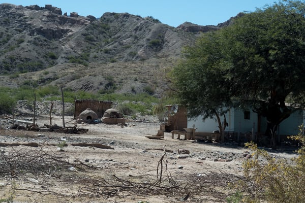 Beobachtungen: Wenn wir die Route der meist besuchten Dörfer verlassen und uns auf Nebenwegen bewegen, fallen uns zwei Dinge ins Auge: Ein typisches Dorf, sei es auch noch so klein, besteht immer und mindestens aus einer Schule (escuela provinical no 4292), einer katholischen Kirche, einem überdimensional (oft Originalgrösse) Fussballplatz, einem Gemeindeplatz (meist mit Baum und zwei Fahnenstangen). Mindestens zwei weitere Häuser sind auf Platz. Die weiteren, dem Dorf / Weiler angehörenden Familien leben in einem grossen Umkreis in oft höchst bescheidenen Behausungen. – Wenn wir in diese Dörfer kommen, ist niemand da. «Die verschwinden, wenn wir kommen.» Das wäre eine mögliche Erklärung. Siesta (bei den Tagestemperaturen!), eine andere. – Viele Behausungen sind jedoch verschlossen, kaputt, ohne Tier, ohne Lebenszeichen, nada. – Landflucht als Generationenphänomen oder Ausdruck der grossen Wirtschaftskrise in Argentinien? – Da niemand da ist («Die verschwinden, wenn wir kommen.»), können wir unsere Vermutungen nicht verifizieren.