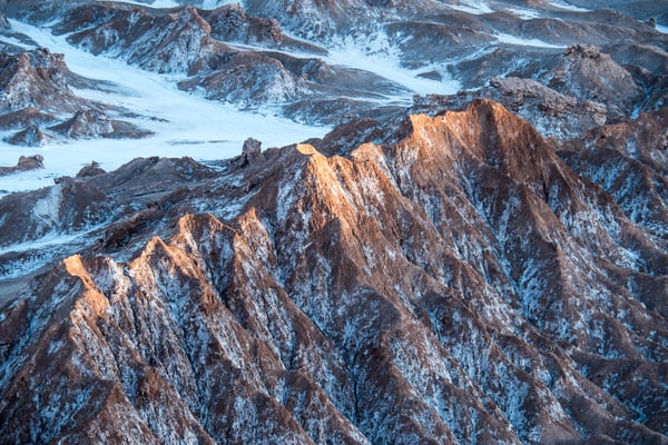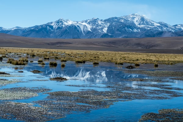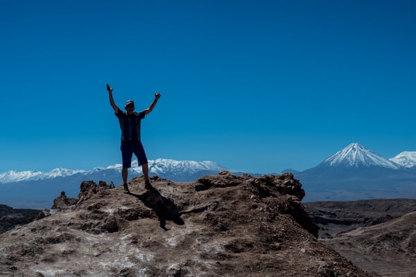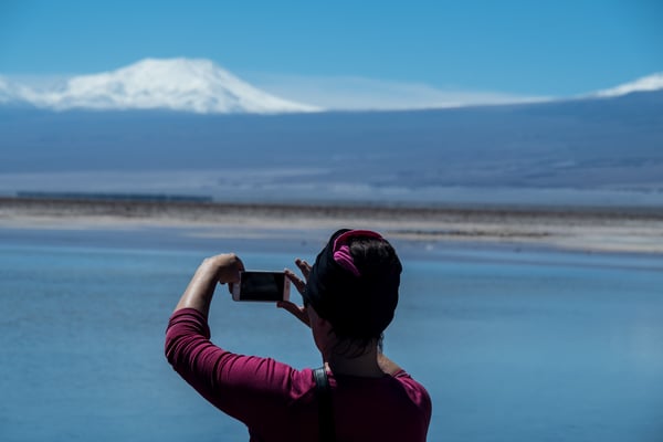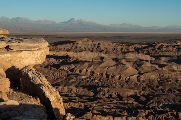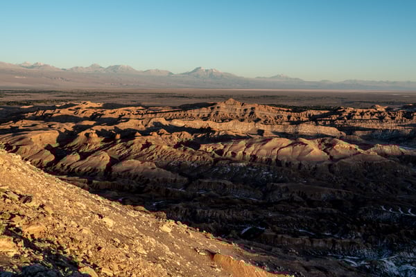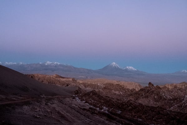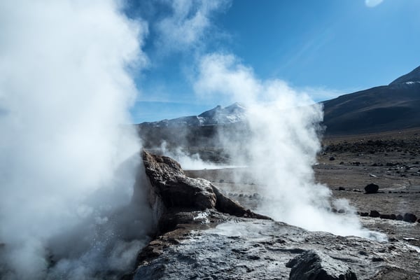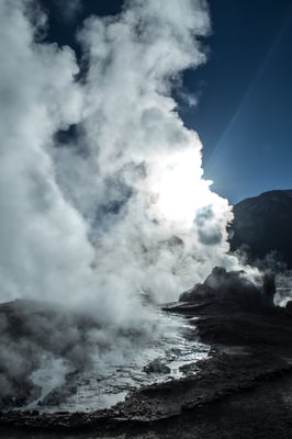 Calama, eine Arbeiterstadt, welche vor allem von der (mittlerweile zweit-) grössten Mine (Kupfer) Chiles lebt. Nichts Schönes, aber vor allem praktisch. Wir mieten ein Auto … und fahren in die Oase San Pedro de Atacama. Diese ehemalige Salpeterhochburg ist heute ein Mekka für Wüstengänger. Und wer weiss, wie es in Mekka zu und hergeht, kann sich das Gewusel in den wenigen Strassen in San Pedro de Atacama vorstellen. Viel zu viele Tour-Anbieter, viel zu viele Restaurants und Hotels für mehr oder weniger Touristen (Nebensaison). Wir sind froh um unsere Unabhängigkeit und unsere Unterkunft am äussersten Rand des Gewusels. Meist können wir uns antizyklisch und unabhängig bewegen; ausser am frühen Morgen um vier. Wir fahren so früh los, damit wir zwei Stunden später bei den beeindruckenden Mini-Geysiren den Sonnenaufgang erleben können. Von 2.200 auf 4.300 m.ü.M. Wer schon mal in der BLINDEN KUH gegessen hat, sollte das Erlebnis auf Autofahren ummünzen; ungefähr so. – Jedenfalls lohnen sich alle unsere Einsätze; denn wiederum sind wir erschlagen von der weitläufigen, facettenreichen, kargen und doch so lebendigen, farbenfrohen Wüstenlandschaft.