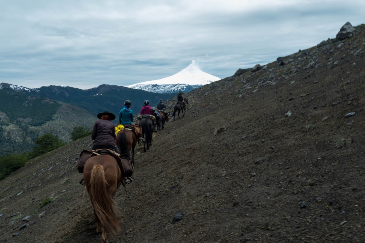 Pucon, Überraschung: diese Stadt kann höchst unangenehme Temperaturen und v.a. Regentage aufweisen. – Wir treffen in genau dieser Phase in Pucon ein. Die bekannten Vulkane sehen wir nicht; gespannt sind wir, wie es sich in unserem Büssli im Regen leben lässt. – GUT! Wir schaffen es, alles inwändig zu organisieren und räumen, einzig die OUTDOOR-Küche braucht eine warme Jacke; das Dach ist vorhanden. – Wir beginnen die Tour mit einem Halbtagesritt, bei dem wir die Pferde und ihre...