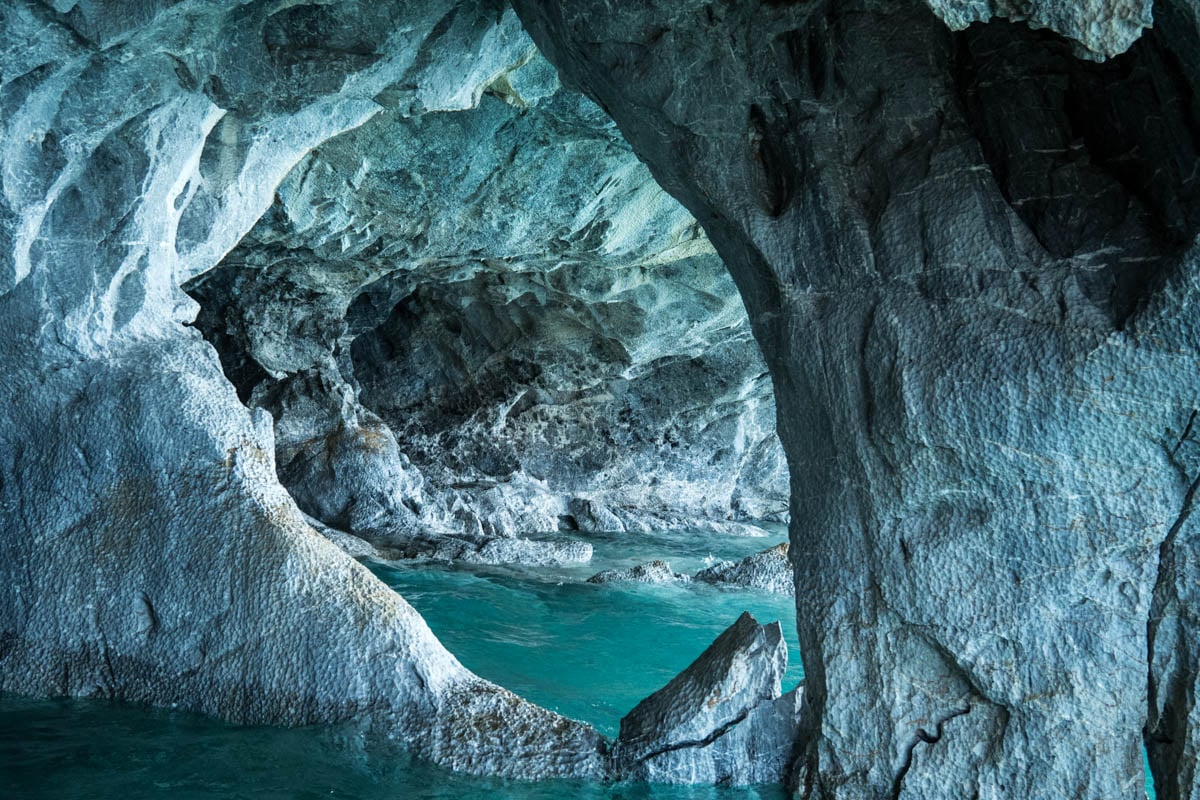 Eine touristische Attraktion im verschlafenen Nest Puerto Rio Tranquillo und dem anliegenden Lago General Carrera, die Capillas de Marmol: von Wind und Wasser gebildete Höhlen mit faszinierenden Strukturen und Farben. Die Fahrt auf dem Boot, die Sicht vom Wasser aufs Land, eine weitere eindrückliche Erfahrung.